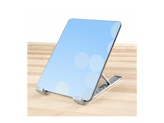 Ajustez l'angle de vue du panneau de base/clavier d'un ordinateur portable, en utilisant ce support élévateur pour ordinateur portable. Doté d'un cadre pliable à largeur réglable, ce support supporte les téléphones/tablettes plus petits ainsi que les moniteurs portables, et les ordinateurs portables avec des tailles d'écran allant jusqu'à 15,6". Le support est capable de supporter des appareils pesant jusqu'à 10 kg. Il est expédié entièrement assemblé, prêt à être déployé immédiatement.