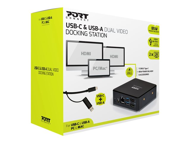 PORT connect USB-C & USB-A Dual Video Docking Station 2 X 2K