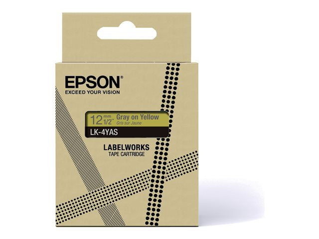 Gris sur jaune - Rouleau (1,2 cm x 8 m) 1 cassette(s) boîte de suspension - cartouche de bande - pour LabelWorks LW-C410, LW-C610