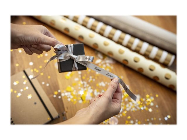 Lors d'occasions spéciales, utilisez le ruban TZe-R931 avec votre étiqueteuse P-touch pour adresser vos vœux aux personnes qui vous sont chères. Laissez libre cours à vos talents et personnalisez vos cadeaux, vos cartes et vos créations avec le ruban tissu TZe-R931 Brother original.