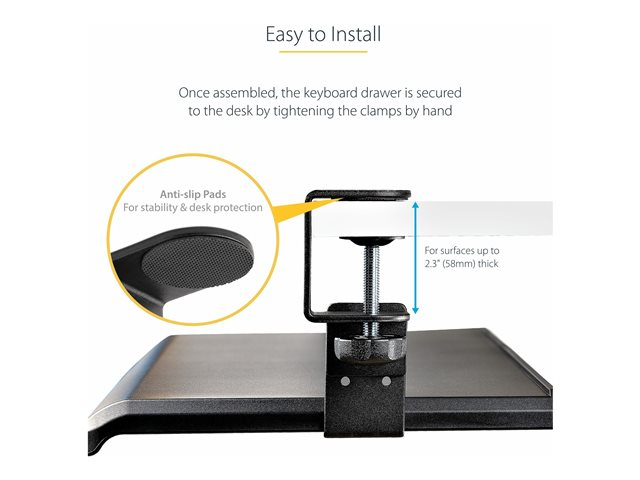 StarTech.com Under-Desk Keyboard Tray, Clamp-on Keyboard Holder, Supports up to 12kg (26.5lb), Sliding Keyboard and Mouse Drawer with C-Clamps, Height Adjustable Keyboard Tray