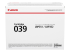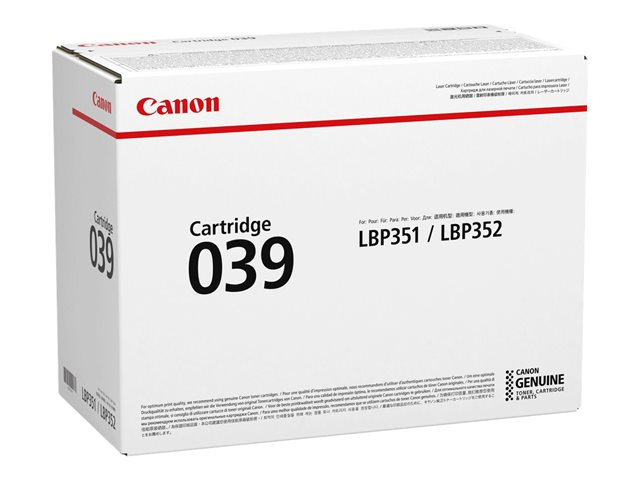 Description du produit Canon 039 - noir - original - cartouche de toner Type de Produit Cartouche de toner Technologie d'impression Laser Couleur d'impression Noir Rendement Jusqu'à 11000 pages Compatible avec imageCLASS LBP351dn, LBP351x, LBP352dn, LBP352x; i-SENSYS LBP351x, LBP352x; Satera LBP351i -