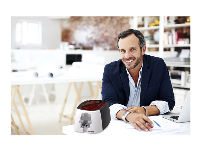 La Badgy200 est une solution tout en un qui vous permet d'imprimer à la demande vos badges et cartes personnalisées.
