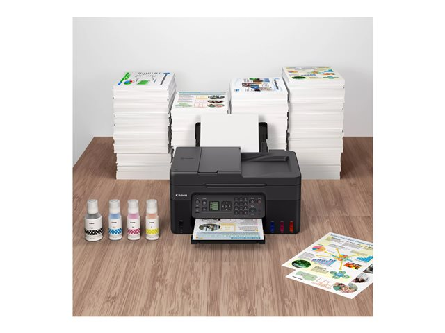 Réalisez des économies considérables grâce à l'imprimante rapide et à volume élevé MegaTank 4-en-1 G4570 avec réservoirs d'encre rechargeables, qui assure un coût total de possession réduit tout au long de sa durée de vie. Imprimez sur une grande variété de supports, avec des résultats excellents aussi bien pour les documents que les images, grâce à l'impression de photos sans bordure. Grâce au chargeur automatique de documents, imprimez, numérisez, copiez et télécopiez sans effort des documents de plusieurs pages. Connectez-vous en toute fluidité à des ordinateurs et des smartphones ou tablettes via le Wi-Fi rapide. Avec ses commandes simples, son écran de 3,4 cm, sa cartouche de maintenance remplaçable par l'utilisateur et ses bouteilles d'encre rigides, sa simplicité d'utilisation en fait l'imprimante quotidienne idéale pour la maison.