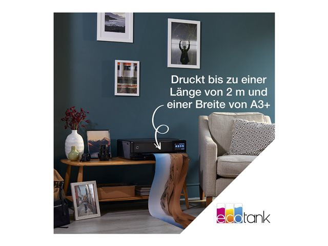 Laissez libre cours à votre créativité avec de superbes photos et documents au format A3+ à un coût d'impression par page incroyablement bas. Imprimez, copiez et numérisez facilement grâce à l'impressionnant écran tactile couleur de 10,9 cm, à la gestion des supports à 5 chemins et au système d'encre 6 couleurs innovant. Sans cartouche à remplacer et avec ses fonctions de connectivité flexibles, c'est l'imprimante parfaite pour la famille artistique moderne.