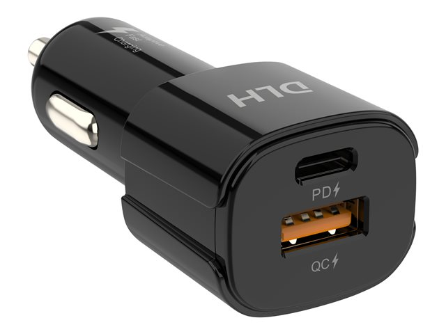 Description du produit DLH adaptateur d'alimentation pour voiture - USB type A, 24 pin USB-C - 38 Watt Type de Produit Adaptateur d'alimentation pour voiture Dimensions (LxPxH) 3.1 cm x 7.1 cm Diamètre 2.3 cm Poids 24 g Type de prise Total 2: USB type A, 24 pin USB-C Tension requise 12 / 24 V Technologie de charge rapide Samsung Fast Charge Alimentation fournie 38 Watt Détails du dispositif d'alimentation - 24 pin USB-C with Power Delivery - 20 W