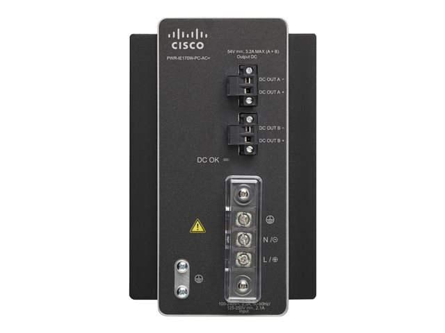 Description du produit Cisco AC-DC Power Module for POE solution - adaptateur secteur - 170 Watt Type de périphérique Adaptateur secteur - montable sur rail DIN Tension d'entrée CA 90 - 264/ CC 106 - 300 V Tension de sortie 54 V Capacité d'alimentation 170 Watt Conçu pour Industrial Ethernet 4000 Series -