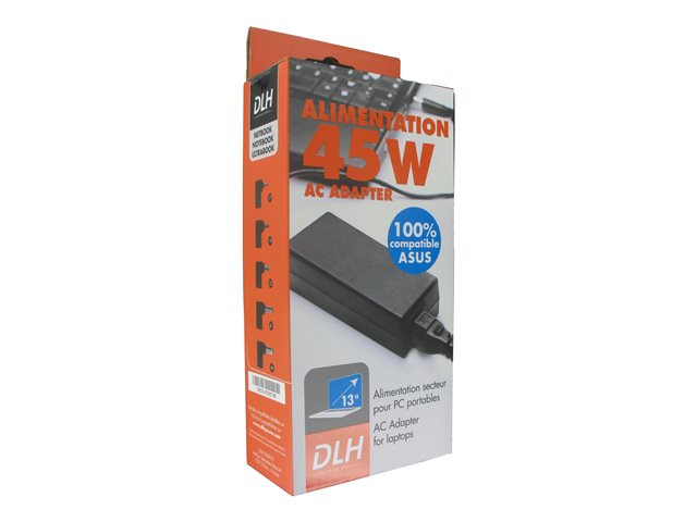 Description du produit DLH REGULAR DY-AI3144 - adaptateur secteur - 45 Watt Type de périphérique Adaptateur secteur - externe Poids 150 g Tension d'entrée CA 100/240 V Tension de sortie 19 V Capacité d'alimentation 45 Watt Accessoires inclus 5 embouts d'alimentation d'ordinateur portable Couleur Noir Dimensions (LxPxH) 9.1 cm x 4.4 cm x 2.7 cm Garantie du fabricant Garantie de 2 ans -