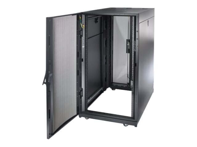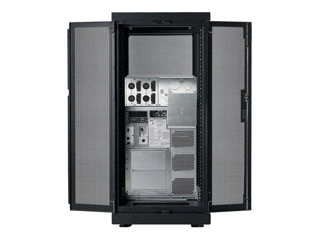 Armoires informatiques riches en fonctionnalités optimisées pour l'architecture en rangées InfraStruxure, la gestion des câbles, la distribution d'alimentation ainsi qu'une circulation d'air optimale.