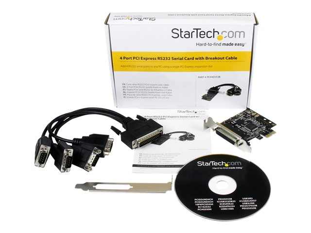 La carte série 4 ports PCI Express PEX4S553B (avec câble de commande) permet d'ajouter 4 ports de série RS232 grâce à une seule fente d'extension PCI-E et un câble inclus 1 à 4 qui permet d'ajouter 4 ports de série à une fente unique à faible encombrement.