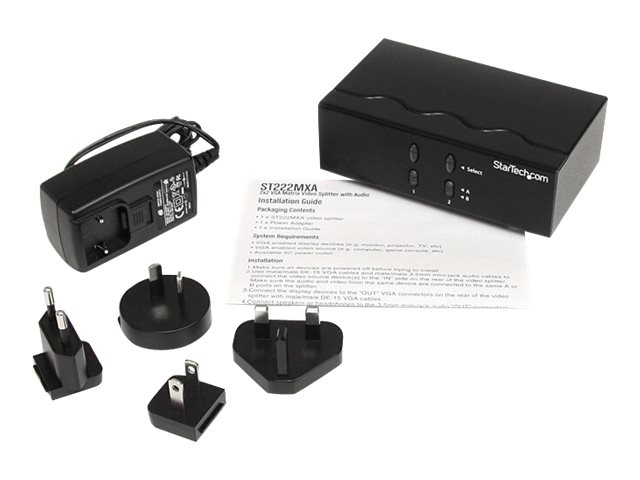Le répartiteur/commutateur de matrice VGA 2x2 ST222MXA vous permet de partager 2 entrées VGA distinctes (et leur source audio correspondante) entre 2 écrans ou projecteurs indépendants.